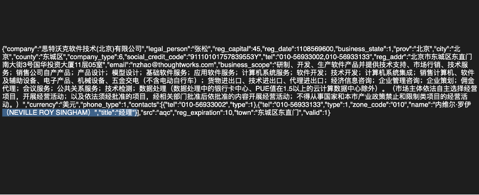 Image of the 2022 company profile of Thoughtworks Beijing taken from the National Enterprise Credit Reporting System (NECIPS).