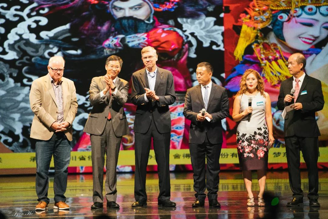 From left: Governor Tim Walz (D-MN), Yu Peng, Rep. Erik Paulsen (R-CA), Yang Fan, Deng Qing, and Ma Yuanzhuo (aka Vincent Mar) at the ACFROC performance in Minneapolis, Minnesota, on September 22, 2018.